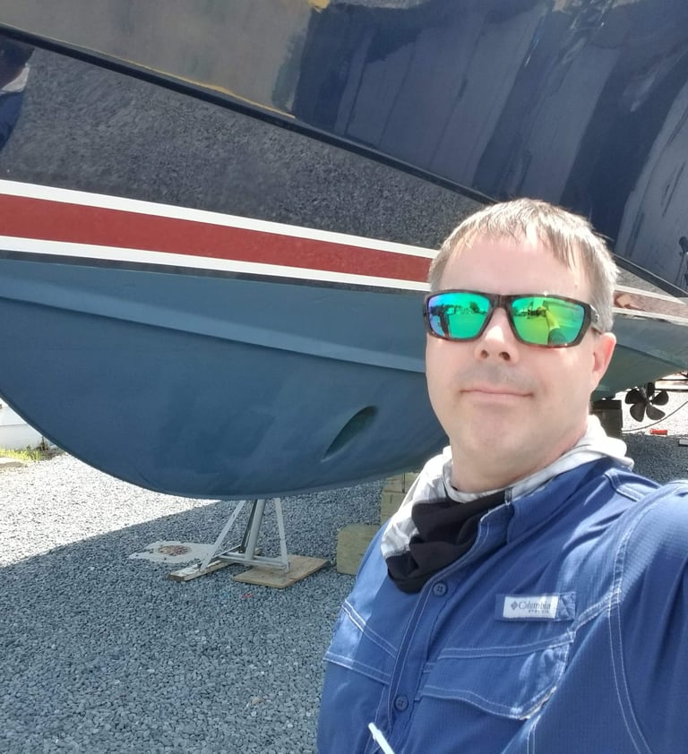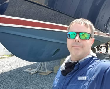 Close-up of a sleek marine GPS device mounted on a boat dashboard against a blue ocean backdrop